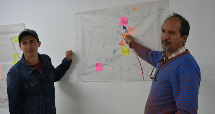 En los talleres dedicados al tema de movilización (pertinencia escolar), las actividades partieron en identificar cómo las situaciones de deserción se dan en relación con la institución educativa y el contexto en la cual encuentra ubicada. Para hacer esa labor se usaron diversas estrategias entre las que destaca el uso de cartografías sociales vinculadas con las historias sobre conflicto y deserción escolar que los maestros y maestras aportaron durante las actividades del taller.